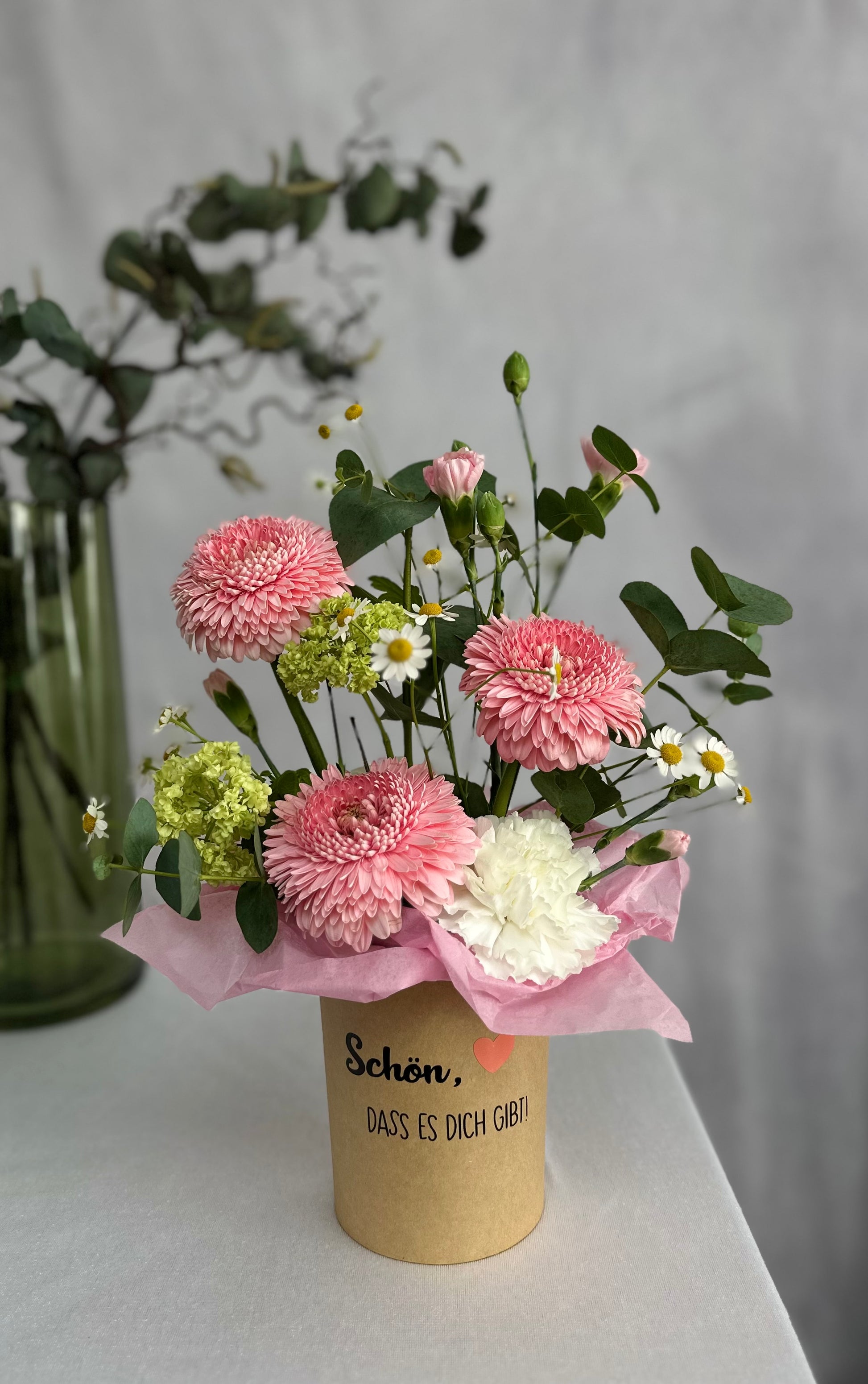 Zeige deiner Mutter, wie viel sie dir bedeutet, mit diesem wunderschönen Becher mit frischen Blumen. Eine tolle Geschenkidee zum Muttertag, um ihr zu sagen: "Schön, dass es dich gibt!"
