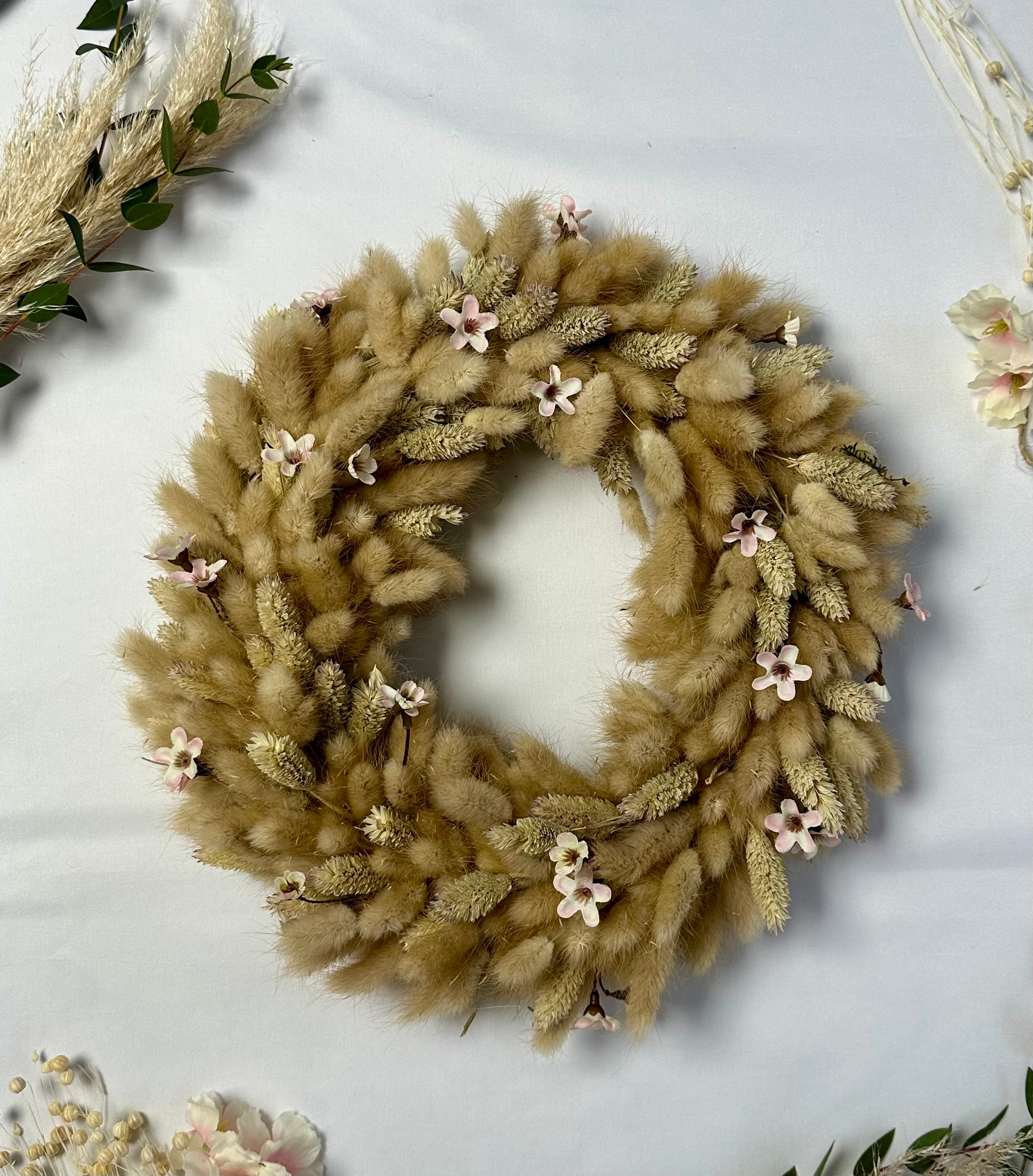 Der Türkranz Lagurus ist eine wunderbare Wahl für Ihre Tischdekoration oder als Türschmuck. Mit seinem natürlichen Ton verleiht er jedem Raum eine ansprechende, harmonische Atmosphäre. Setzen Sie mit diesem Kranz stilvolle Akzente in Ihrem Zuhause und bringen Sie eine freundliche Note in Ihre Umgebung.