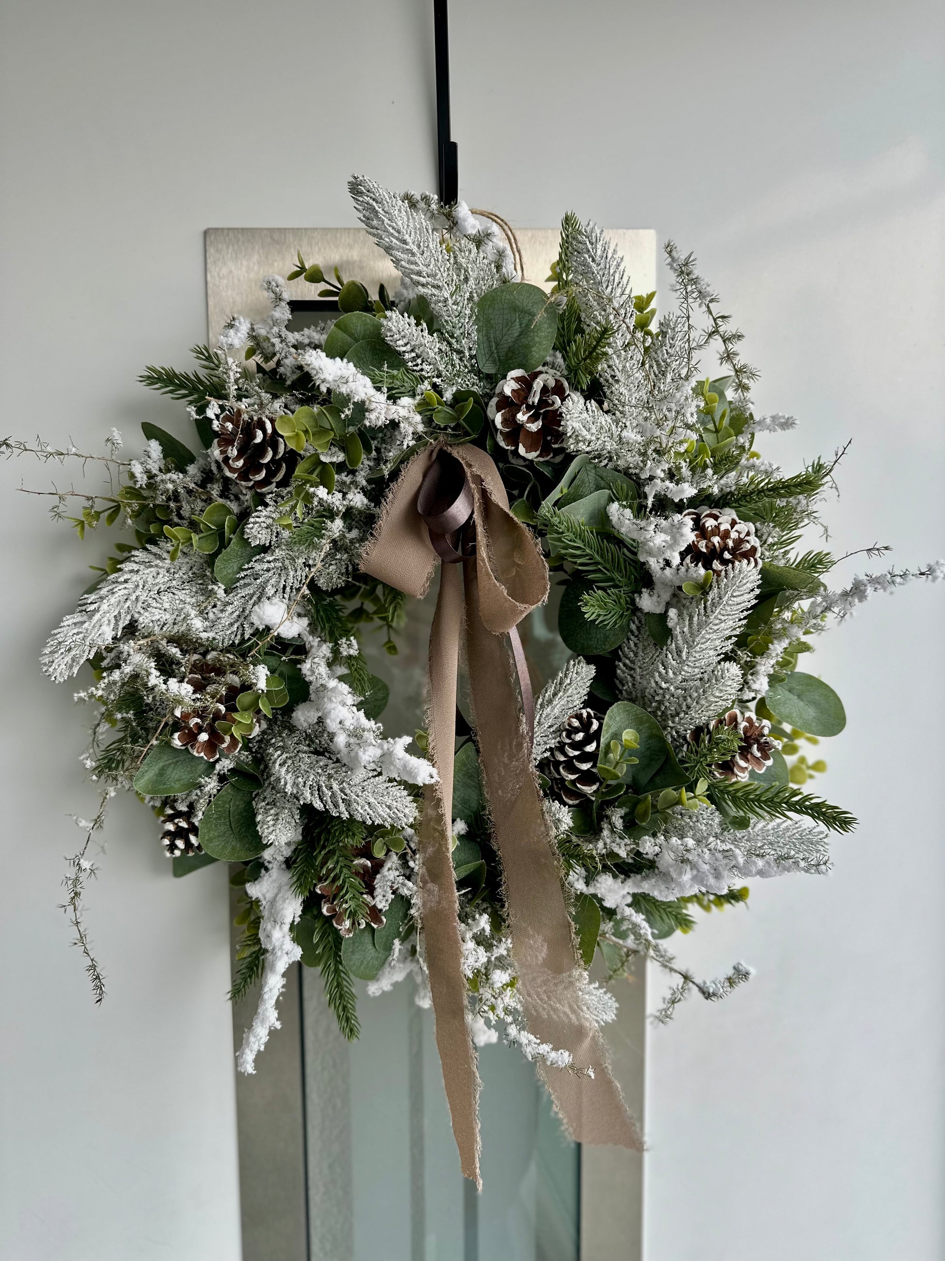 Verleihen Sie Ihrem Zuhause mit dem Türkranz Schneewald einen winterlich-grünen Touch. Der Kranz besteht komplett aus künstlicher Tanne in grün und weiß, was ihn besonders pflegeleicht und langlebig macht. Perfekt für eine festliche Dekoration ohne Aufwand.